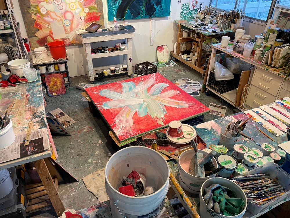 My ‘hood is my studio, where I spend most of my waking hours. It’s in the famous Mile-End sector of Montreal, where artists live side-by-side with the Hassidic and Greek communities… and lately, hipsters!! But we love ’em. On the 10th floor, looking East, the studio is a magic tower where I dream a world of images and surfaces. Surrounded by galleries, cafés, bookstores and chic cuisine, it’s the most inspiring ‘hood I’ve ever inhabited.