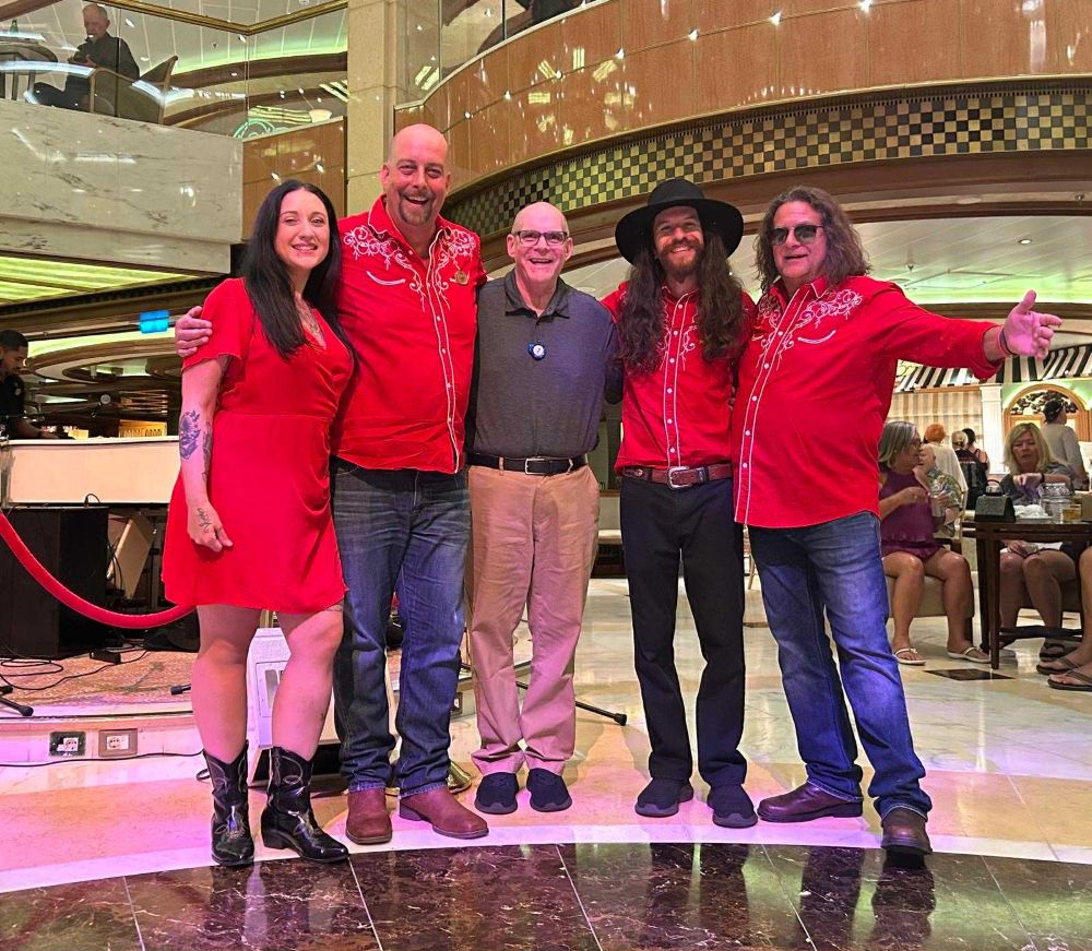 Me and my band, Everlasting Now, with cruise director Giuseppe. From left to right: Matt Gibb, Sabb Ryna Mazerolle, Giuseppe, Ronny Lessard, Jean-François Lortie.