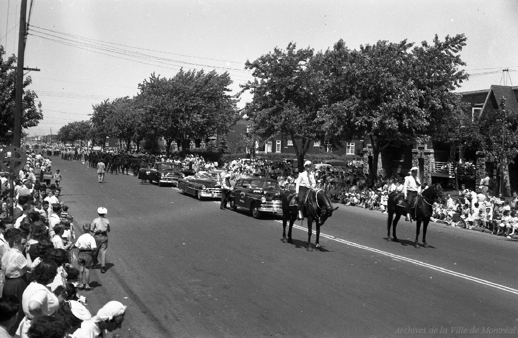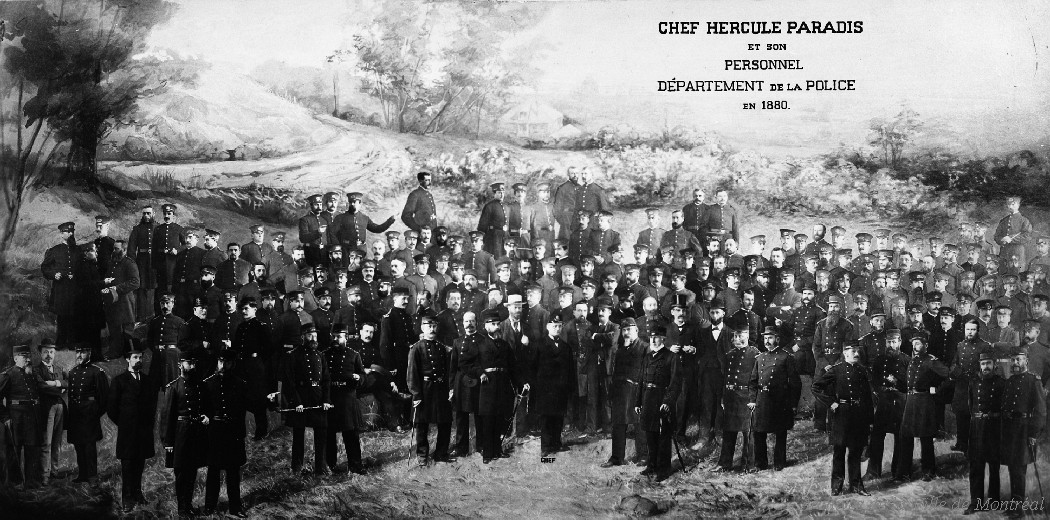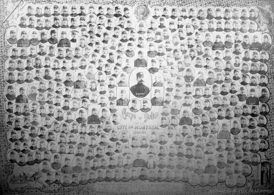 1861 – Militia officer, chief of police of Montréal from 1861 to 1865, and postmaster of Montréal from 1874 to 1891, born in Montréal on September 14, 1824.1880 – Composite photograph showing Chief Hercule Paradis surrounded by members of the Montréal Police Department in 1880.1894 – Photograph showing the members of the Montréal Police Department’s tug-of-war team, Canadian champions in 1894.1900 – Photograph of a mosaic of Montréal Police Department staff members in 1900-1901.1920 – Photograph of Police Station No. 13 at the corner of Frontenac and Rouen Streets.1920 – Photograph showing a mosaic of staff members at Police Station No. 14 in 1920.1920 – Photograph showing a police officer driving a van used as an ambulance by the Police Department.1921 – Photograph of Pierre Bélanger, director of the Police Department from 1921 to 1928.1930 – Photograph of Police Station No. 4 (105 Ontario Street East), built in 1871–1872 and demolished in 1962.1930 – Photograph of Police Station No. 20 (formerly Station No. 27—at the corner of Gouin Boulevard and Lajeunesse Street).1930 – Photograph of the building housing Police Station No. 27, Fire Station No. 35, the Provincial Bank of Canada, and broker F.X. Parizeault (6392 Lajeunesse Street, at the corner of Gouin Boulevard).1931 – General view of the construction site for the new fire alarm centre near the former police station.1931 – General view of the construction site for the new fire alarm center near the former police station. The photo is taken facing west.1944 – File on a car photographed from behind and parked in the police garage.1945 – Photograph of Police Station No. 13 located at the corner of Frontenac and Rouen Streets.1948 – Murder of police officers Paquin and Duranleau.1954 – Two police officers and a man, police station.1954 – Photograph of police officers on horseback followed by dignitaries’ cars.1957 – Photograph of the start of construction work on the Montréal police headquarters behind the annex of City Hall (now the Montréal Municipal Court).1961 – Photographic report on a parking lot project at the summit of Mount Royal. It includes aerial views showing the intersection of roads on the mountain, a parking lot, and the police station.